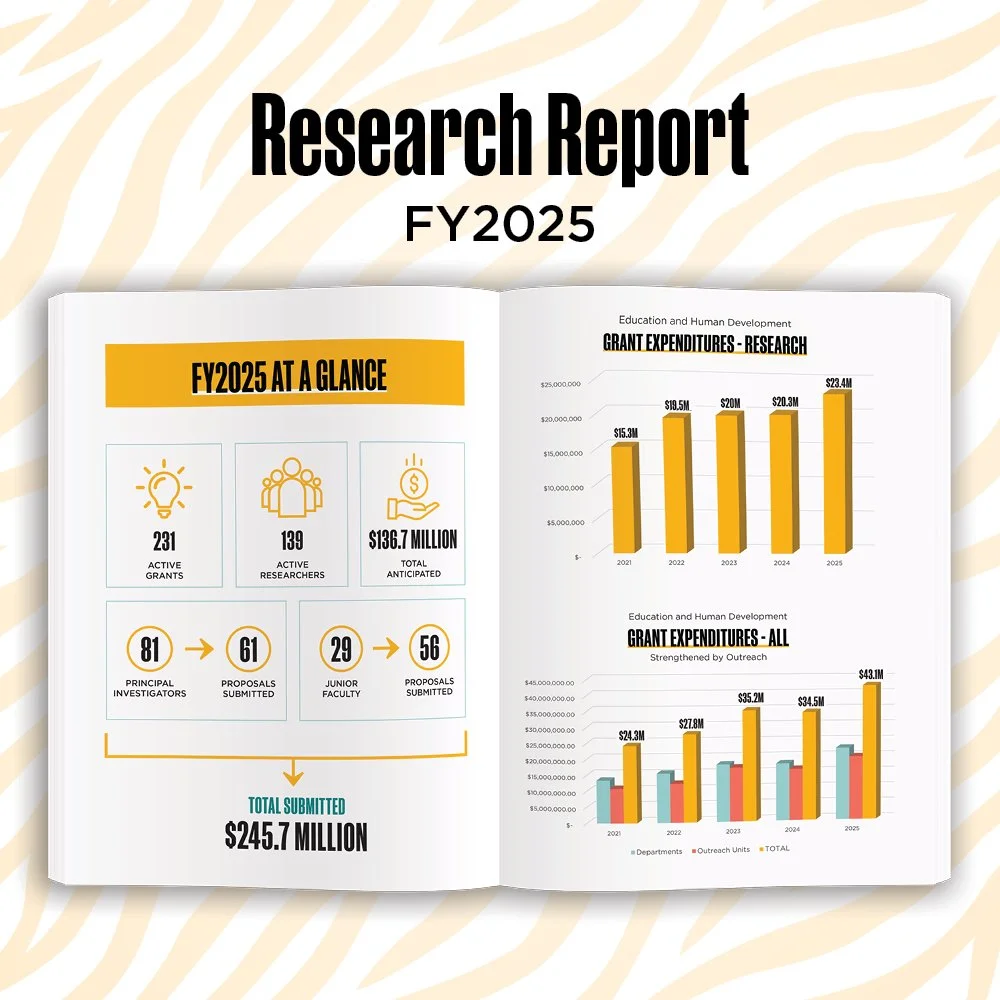 Research Impact Report presents college grant funding data in a clear, accessible format.